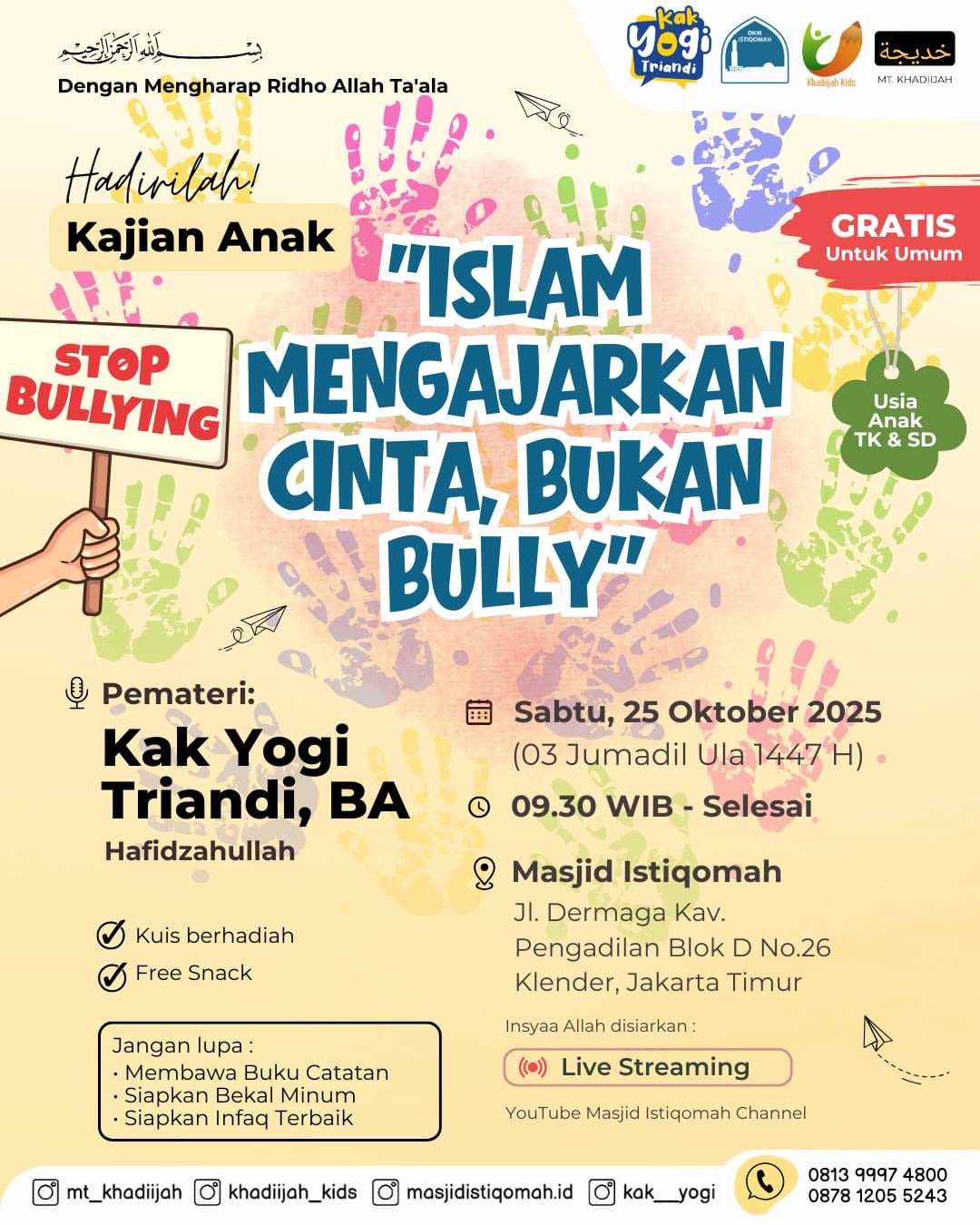 Insyaa Allah disiarkan live di YouTube Masjid Istiqomah Channel